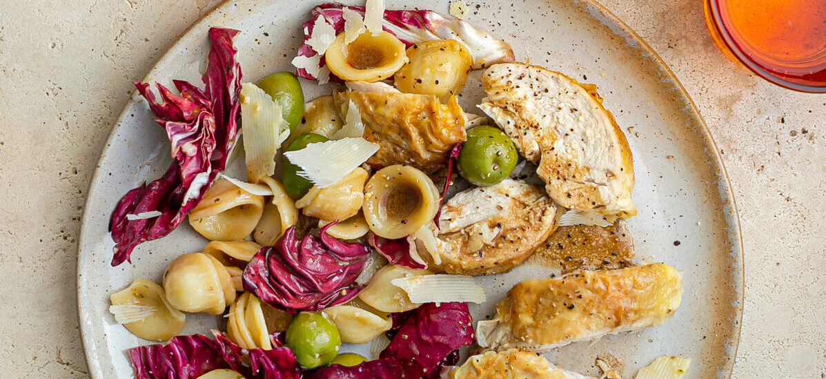 Simple and satisfying healthy green one-tray roast with a zesty dressing
