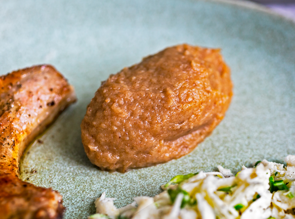 - Heat the sauce: Using a small saucepan, add the cream and whisk in the miso–date paste. Heat gently until combined and thick. Once hot, whisk in the butter and cook for 30 seconds, stirring continuously. Remove from the heat and add a good pinch of sea salt flakes.